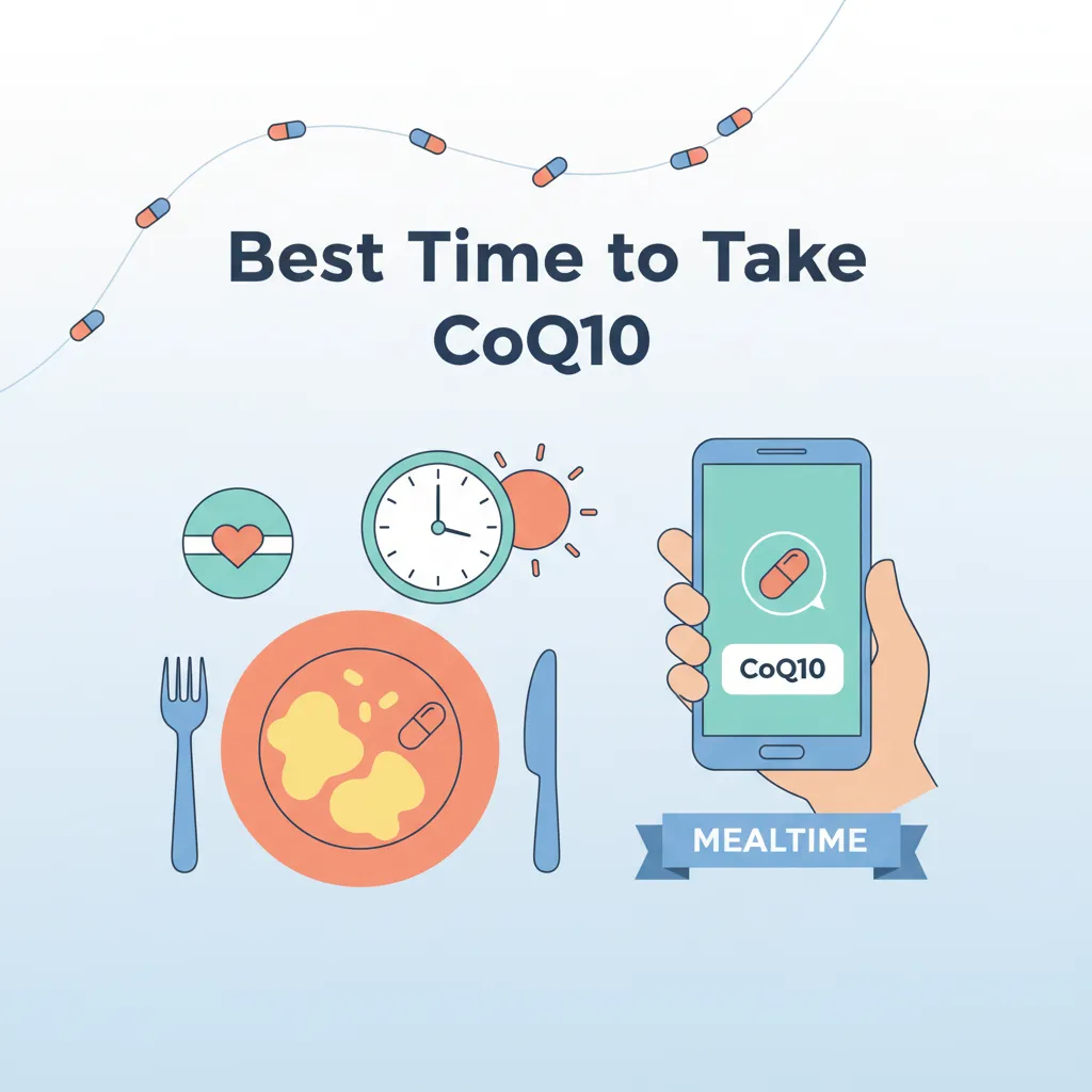 | Afternoon (lunch) | CoQ10, vitamin E | Fat-soluble supplements with a fat-containing meal |