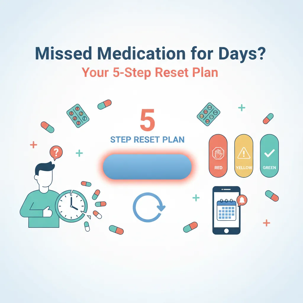 If you've missed your medication for days or weeks, don't panic, but don't restart everything at once. Some medications are safe to resume at your normal dose, while others can be dangerous to restart without medical guidance. Your first step: check the safety table below, then call your doctor or pharmacist for any high-risk medications.